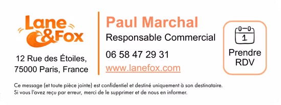 Utilisez ensuite notre Designer Drag & Drop pour modifier précisément chaque élement de la signature afin qu’elle reflète parfaitement votre charte graphique. Intégrez des liens dynamiques, des icônes réseaux sociaux, des liens agenda, vos awards, un disclaimer et bien plus encore.