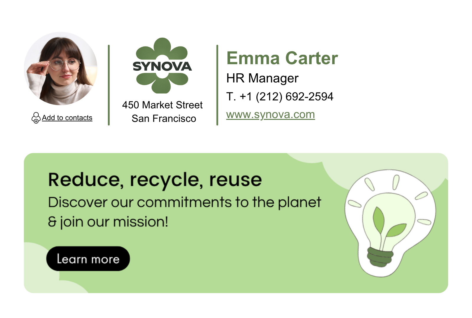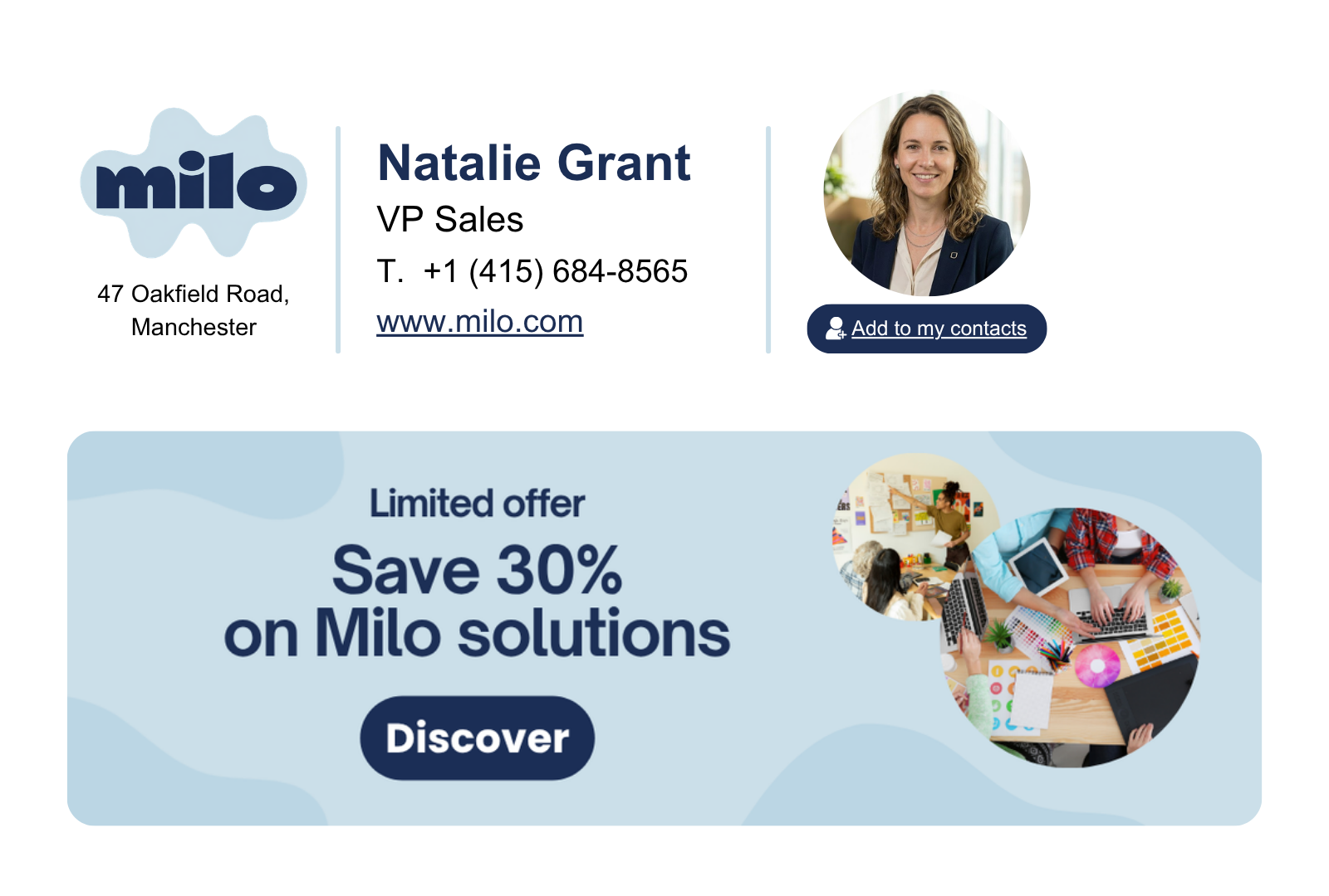 Transformez vos signatures mail en un média d'engagement 1-1 puissant pour vos marques et vos campagnes.