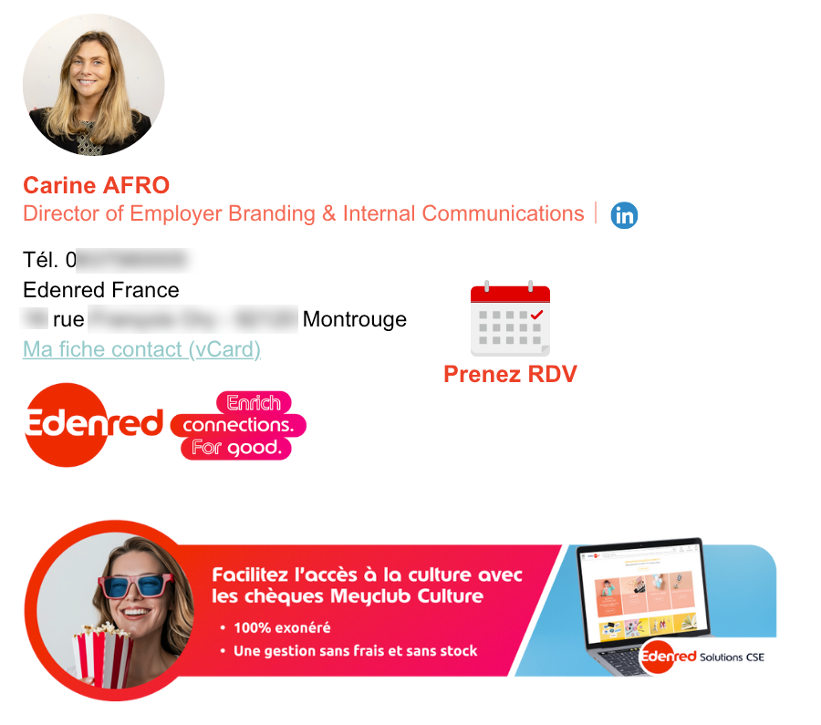 Edenred France’s salespeople particularly appreciate the additional widgets in their email signatures.