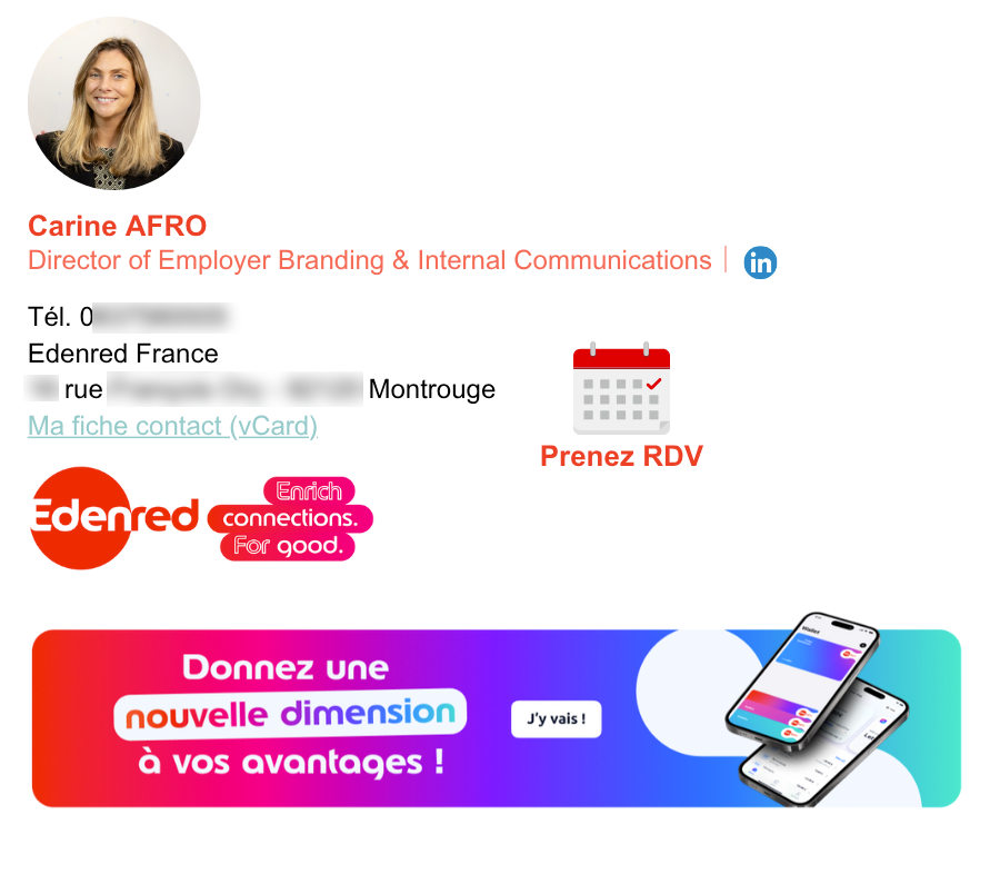 Through harmonized email signatures and internal communication banners, Edenred France can share key messages and reflect its corporate values in every exchange.