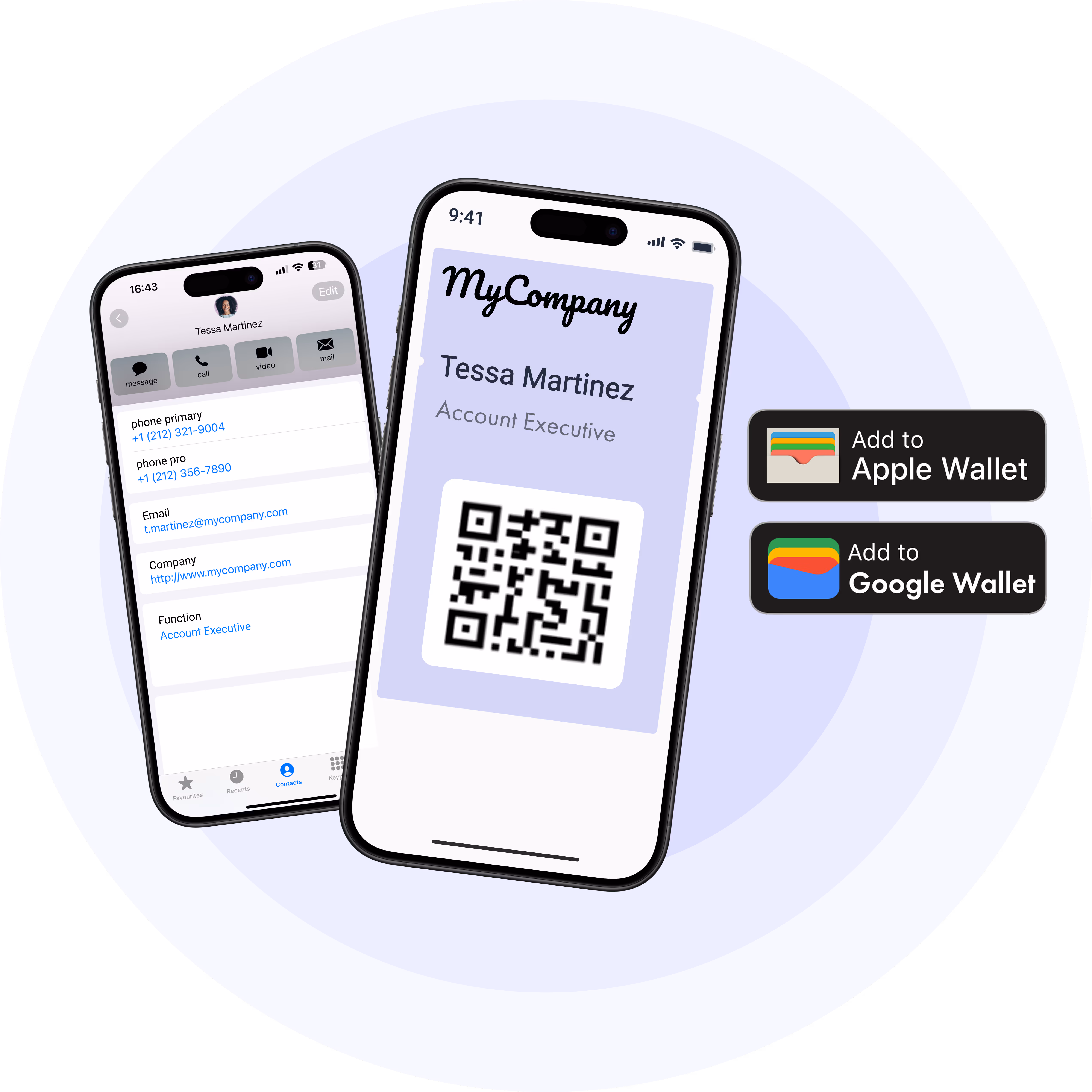 With Letsignit’s vCard, one scan from a smartphone or a single click in your email signature instantly adds your info to Apple or Google Wallet.